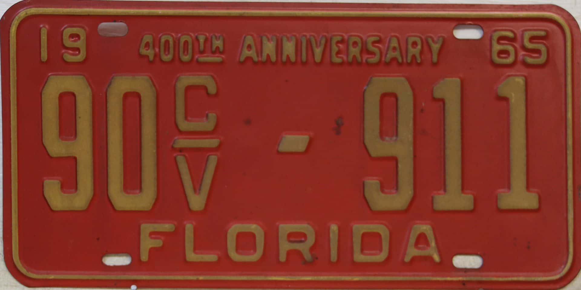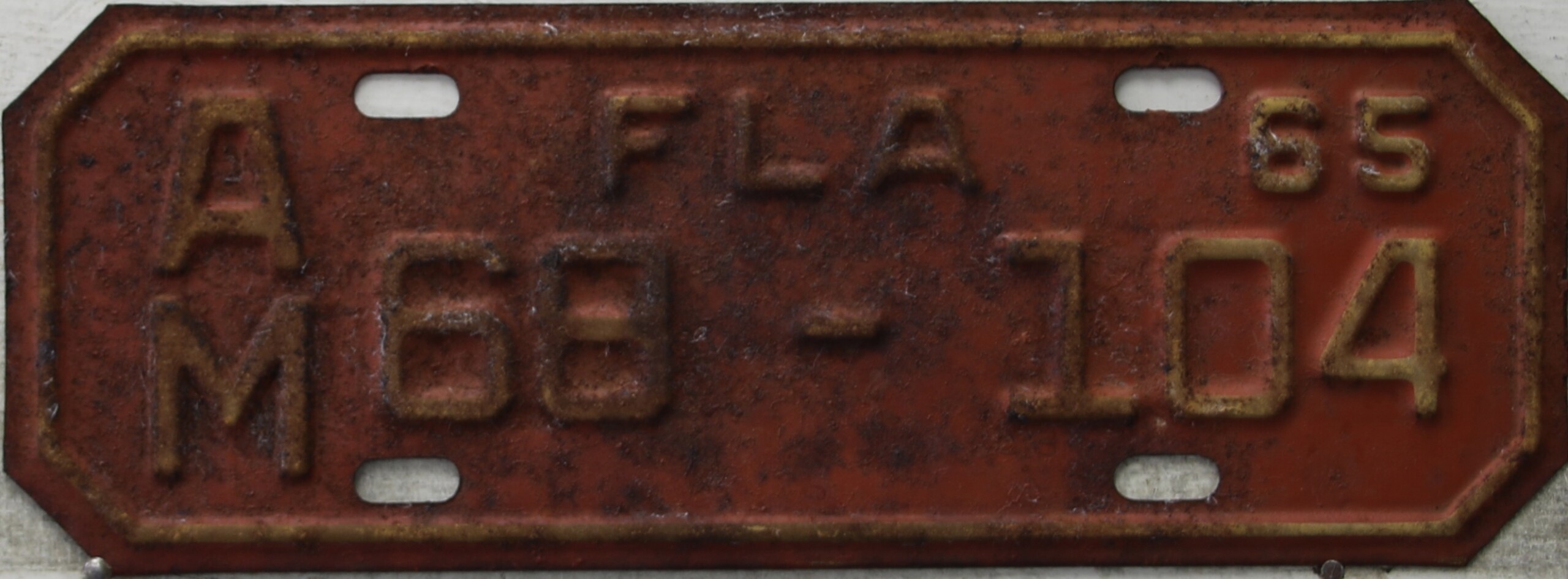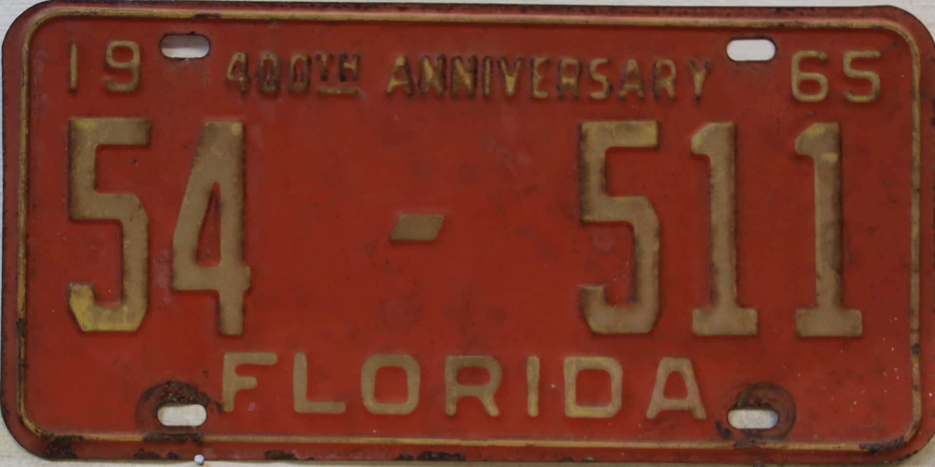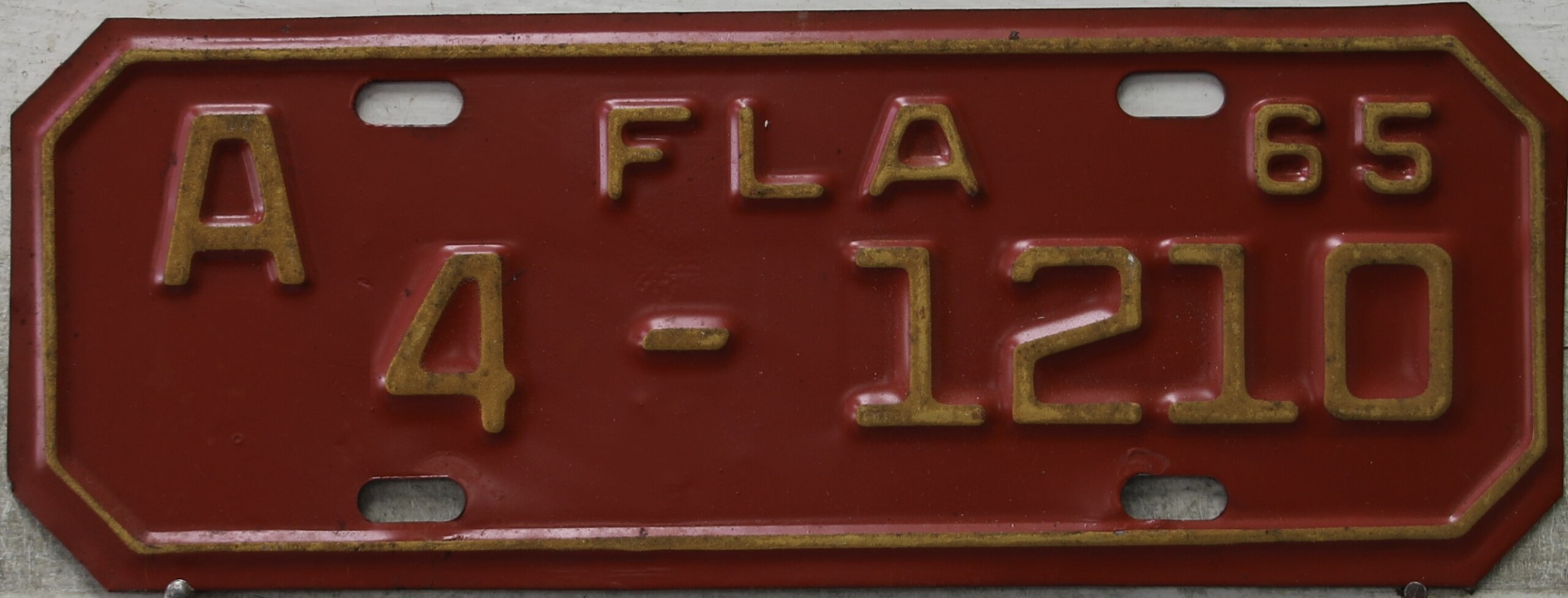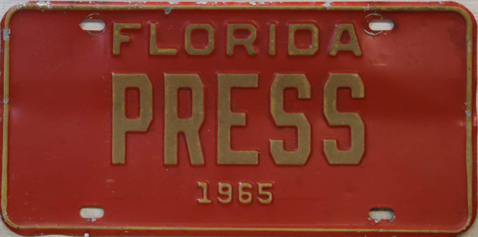 Don’t tell the indigenous inhabitants of Florida, but credit is given to Juan Ponce de Leon for ‘discovering’ Florida in 1565…so in 1965 Florida decided to honor that event by issuing a bright red plate with yellow letters and numbers (think Spanish hues)…as it also happened, I was in high school in 1965, about to sell my 1931 Model A Ford five-window coupe I had restored at our family’s gas station in Cutler, Florida…proceeds were to help fund my first year in college…it had a 1965 Florida plate on it, and I clearly remember focusing on it as the buyer drove it away…so 1965 Florida plates have always been among my favorites…with 67 counties in Florida, our plates for many years always carried the rank by population/registrations, and as you can see, we’re still missing Hamilton (56) and Lafayette (62) Counties…help!